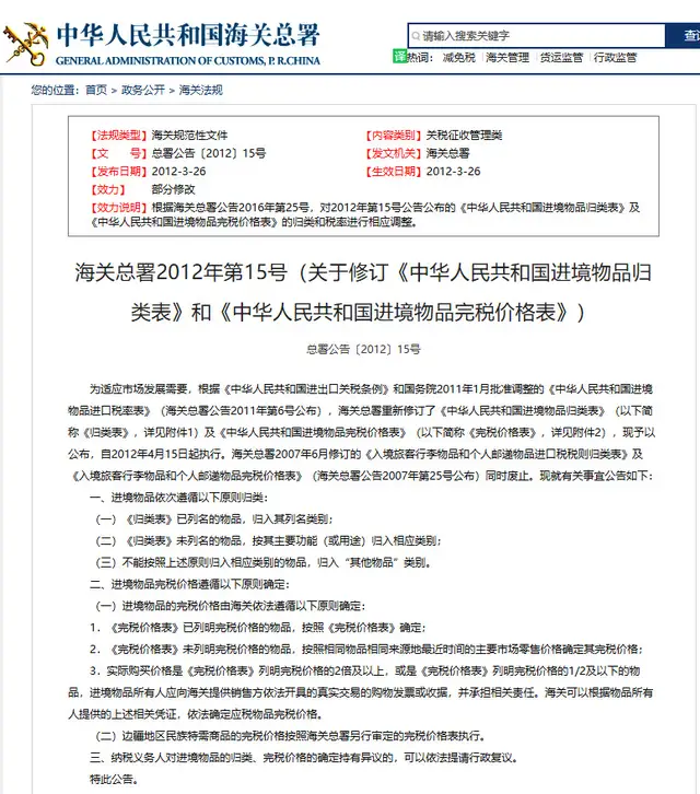 參照《中華人民共和國進境物品完稅價格表》和《歸類表》。